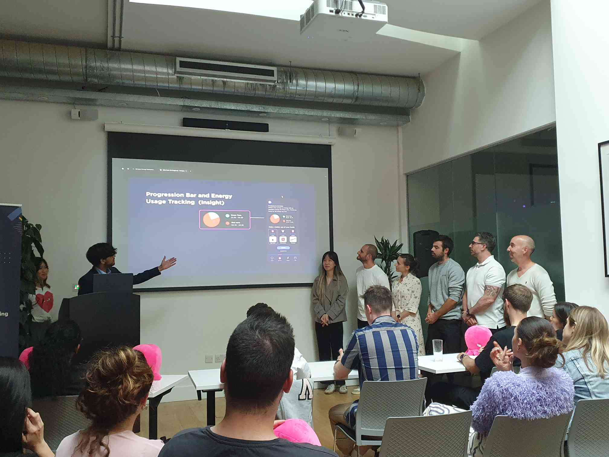We were a team of eight Coral 8 working end to end in a 24 hour hackathon format from problem framing and research synthesis to concepting UI flows and a final pitch. We presented the concept to Octopus Energy judges in a 10 minute pitch and handled follow up questions on feasibility and adoption.